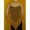 EXCLUSIVO: SOLO HAY 1 IGUAL, en el mismo material y color. Chal triangular o mantón tejido a punto de red con ganchillo e hilo con destellos metálicos de la calidad LM ESTELA. Rematado con preciosa puntilla. Apropiado para cualquier acto festivo o si se quiere ir arreglada y tapar hombros o escote.